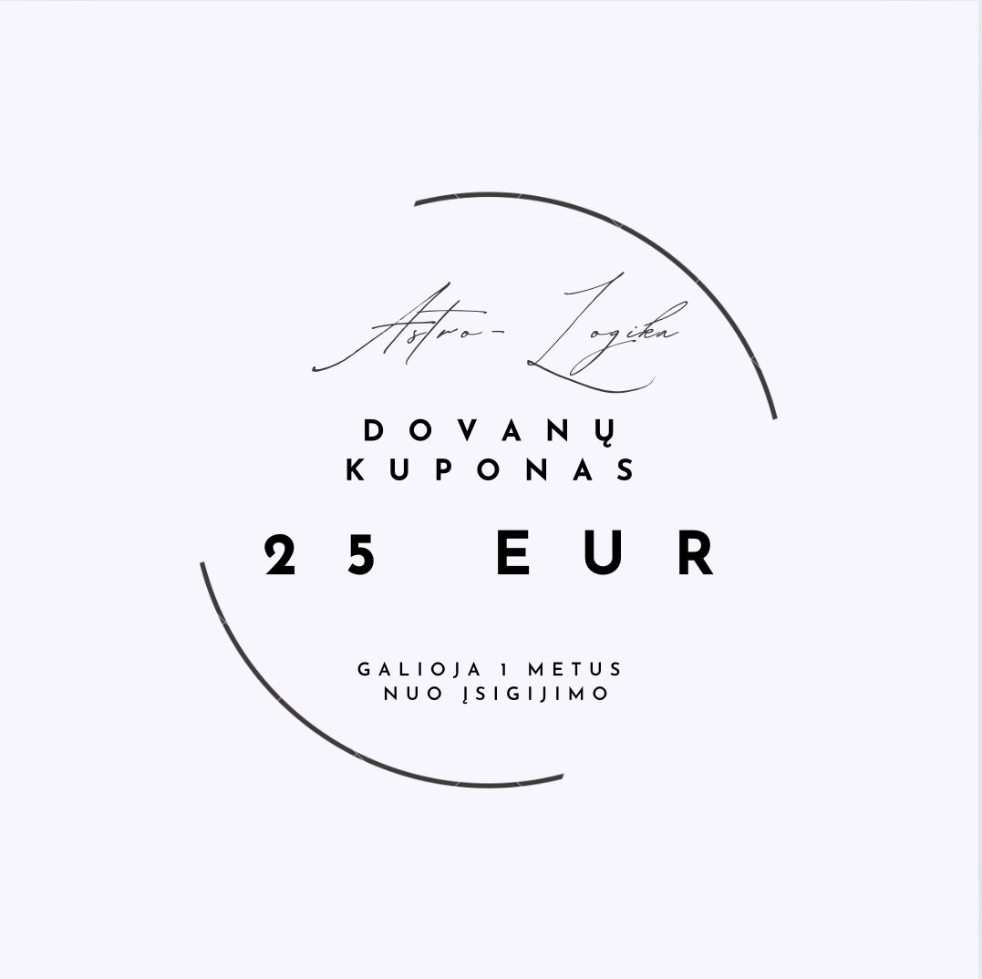 Astrologijos parduotuvės www.astro-logika.lt dovanų kuponas – tai puikus būdas pradžiuginti artimuosius. Kuponas leidžia pasirinkti norimą astrologinę analizę ir pilnai ar dalinai padengti norimos analizės kainą. Tai bus ne tik išskirtinė dovana, bet kartu ir kelionė į kosminį savęs pažinimą. Pasinaudokite galimybe padovanoti žvaigždžių išmintį savo draugams bei artimiesiems!